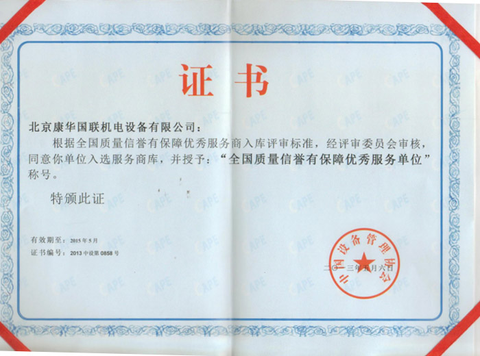 全國質(zhì)量信譽(yù)有保障優(yōu)秀服務(wù)單位